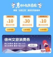 在“惠游红包限量抢”板块,用户可解锁"水韵江苏"高铁专列暖冬福利,根据出行计划领取景区、酒店、高铁票红包。此板块还同步发放徐州文旅消费券,其中景区消费券最高立省120元,酒店消费券最高立省300元,有效降低游客出行与消费门槛,进一步提升目的地吸引力。